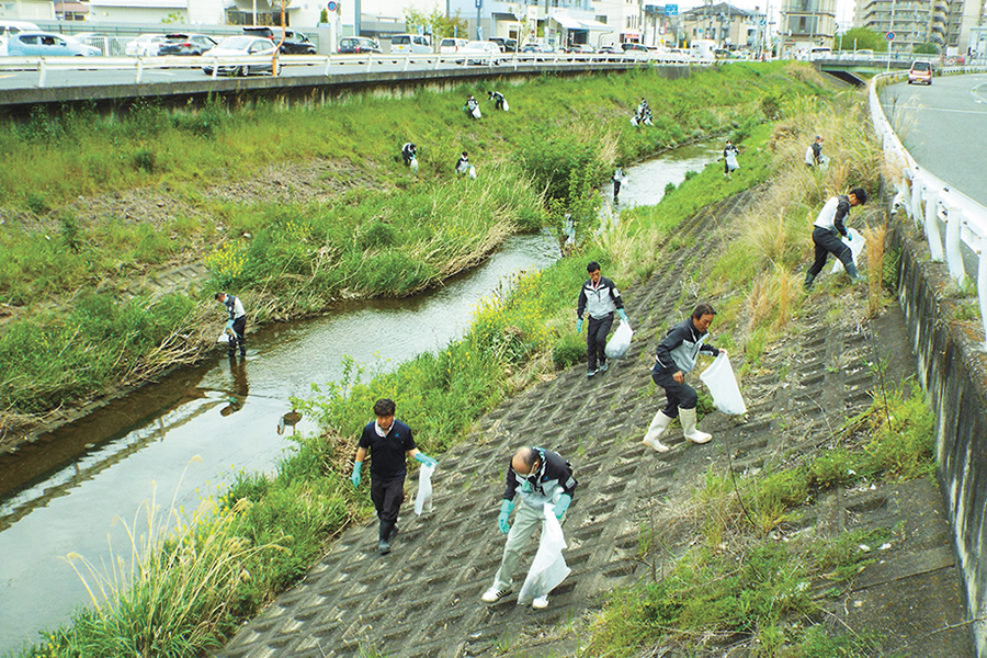 地元のつながりを大切にする取り組みとして、長年にわたり毎年4月に秋篠川の清掃をするボランティア活動をしています。